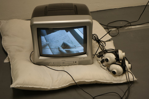 Two looping CRT-style videos present the results. One generates four-second AI images as visual “memories,” while the other shows the artist writing, accompanied by her recorded voice. Nearby, a pen plotter prints selected entries in real time. Not every entry is printed. Some appear incomplete, others disappear entirely.